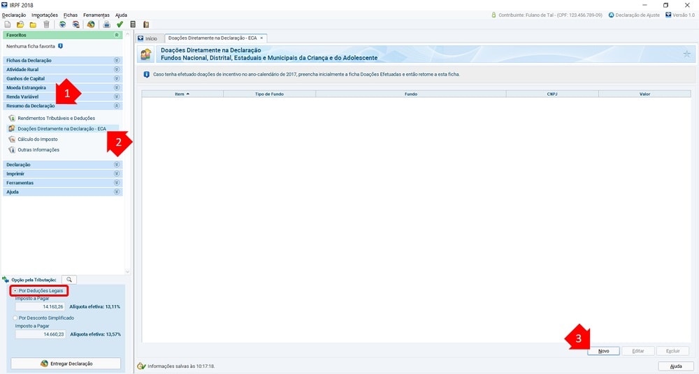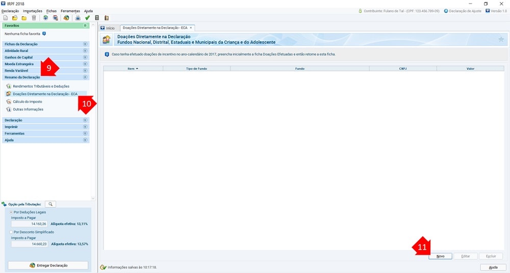 Pessoas físicas poderão deduzir no programa da declaração do imposto de renda as doações feitas no ano anterior diretamente aos fundos até o limite de 6% do valor do imposto devido, e no próprio programa, poderão destinar até 3% para Fundos da Infância e Adolescência.
