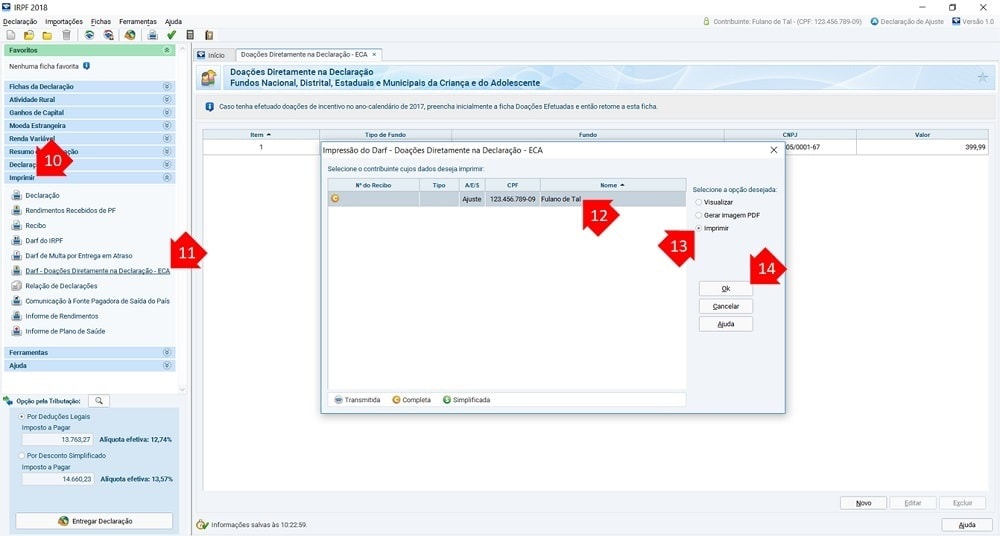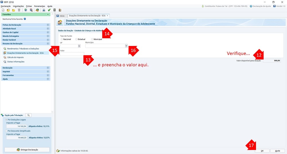 Dentre as destinações, podem ser beneficiados Fundos da Infância e Adolescência e Fundos dos Idosos.
